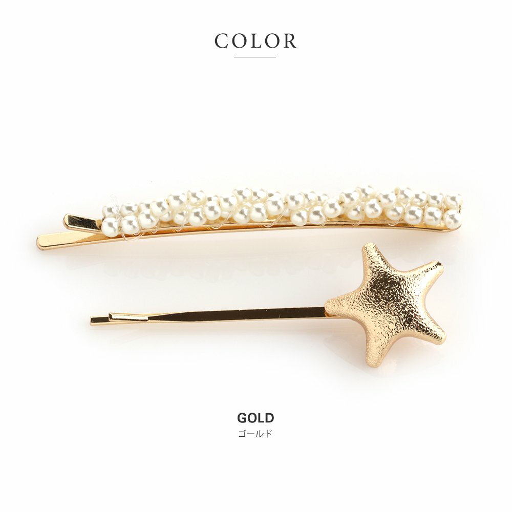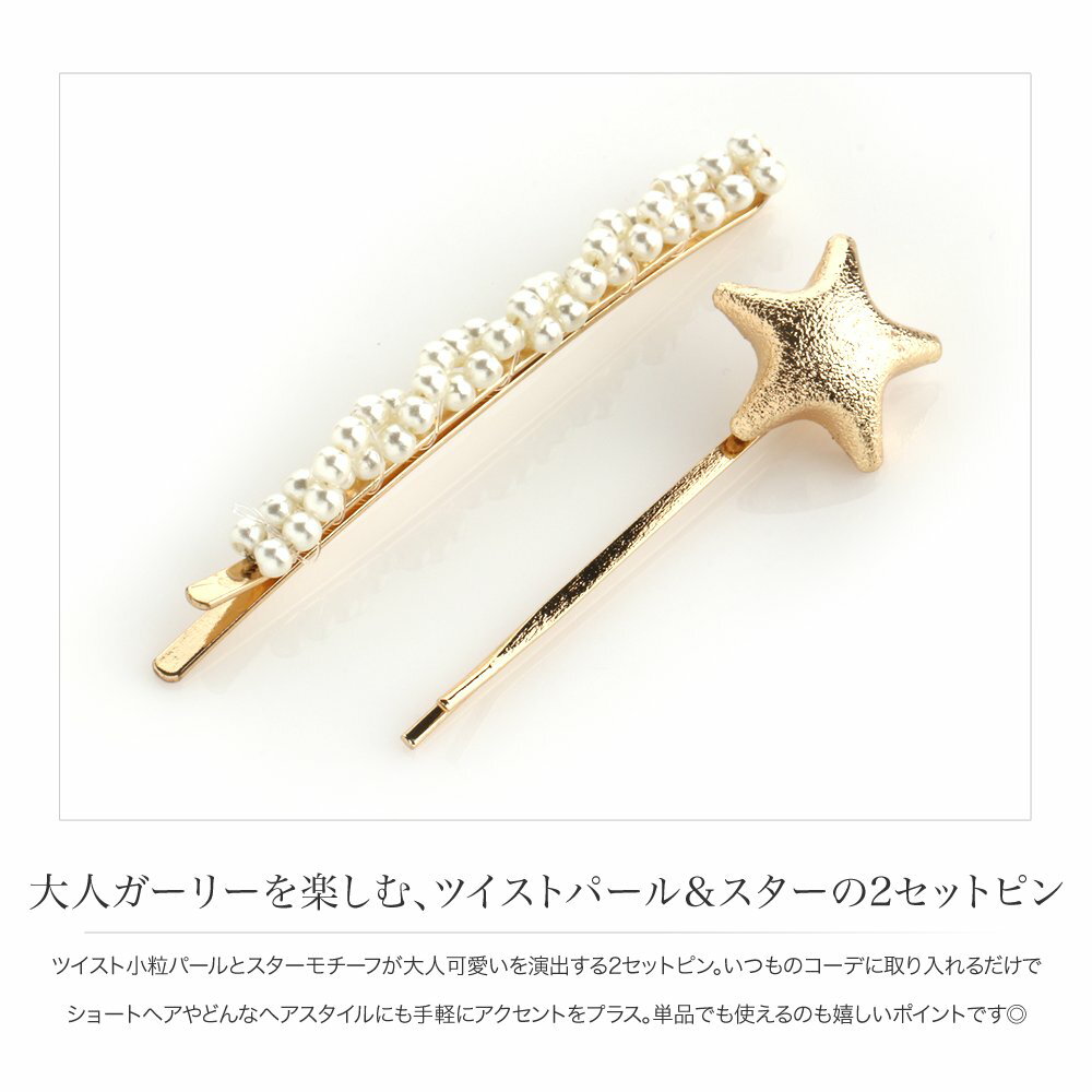 ツイスト小粒パールとスターモチーフが大人可愛いを 演出する2セットピン。