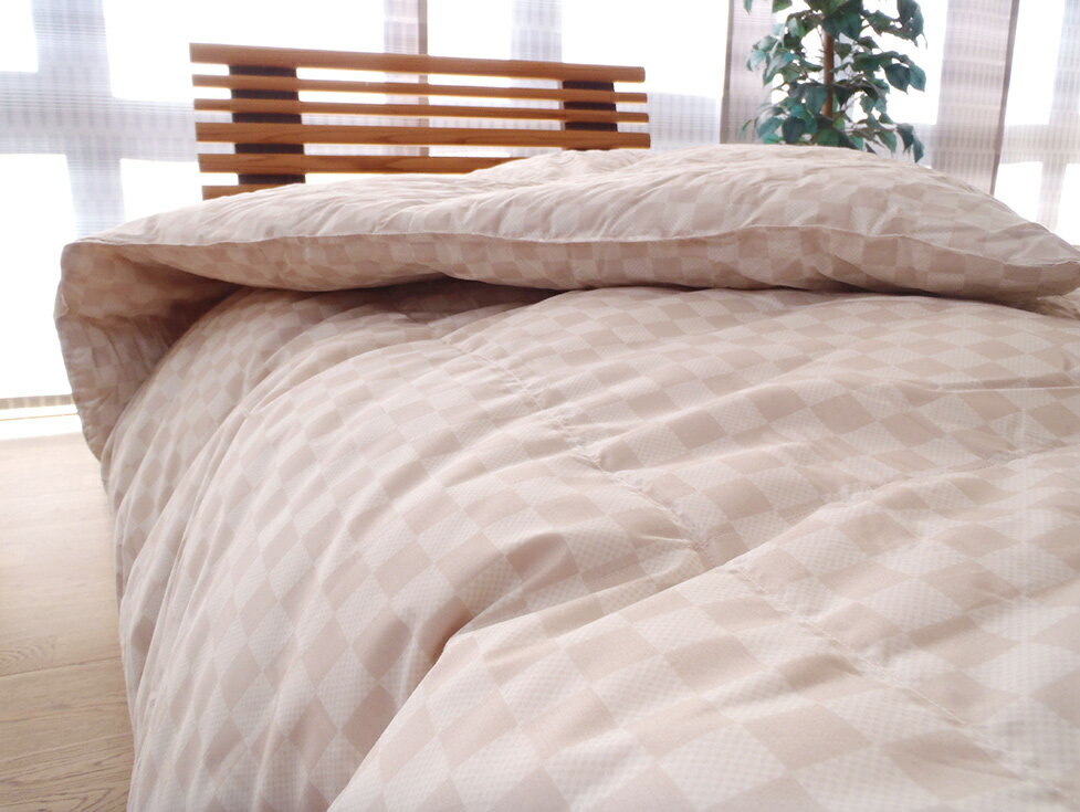 サイズ 210cm×210cm(クィーンサイズ) 側生地 綿70%、ポリエステル30% 羽毛 フランス産 シルバーダックダウン 93% フェザー7% ダウンパワー 390cm3/g以上 中綿羽毛量 1.7kg 総重量 約2.9kg 色 ベージュ色 日本製 ◎写真では実物よりお色が若干薄く見える場合が御座います。