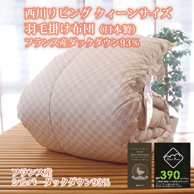 フランス産 シルバーダックダウン 93% 西川リビング クィーンサイズ 羽毛掛け布団(日本製) フランス産ダックダウン93% ◆羽毛は「フランス産シルバーダックダウン93%」を使用しております。