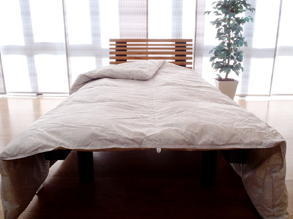 サイズ 170cm×210cm(セミダブルサイズ) 側生地 ポリエステル85%、綿15% 羽毛 フランス産 シルバーダックダウン 85% フェザー15% ダウンパワー 350cm3/g以上 中綿羽毛量 1.3kg 総重量 約2.3kg 色 ベージュ色 日本製 ◎写真では実物よりお色が若干薄く見える場合が御座います。