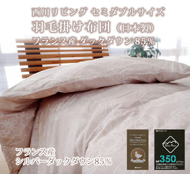 フランス産 シルバーダックダウン 85% 西川リビング セミダブルサイズ 羽毛掛け布団(日本製) フランス産ダックダウン85% ◆羽毛は「フランス産シルバーダックダウン85%」を使用しております。