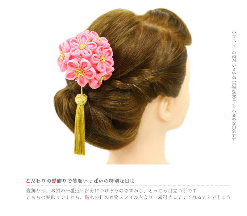 髪飾り 成人式 振袖 袴 花 ピンク 金色 花手毬 手毬 ちりめん つまみ細工 房付き おしゃれ 可愛い 大人 大人可愛い 大きい かんざし 簪 和 和装 レトロ 古典 日本製 ヘッドドレス 卒業式 結婚式 入園式 卒園式 謝恩会 七五三 浴衣 パーティー お祭り No.12-0180 サイズ表 ≪手毬部分≫ 直径 約8cm ≪房≫ 長さ 約11cm × 幅 約2cm ※飾り部分のみ計測しています。
